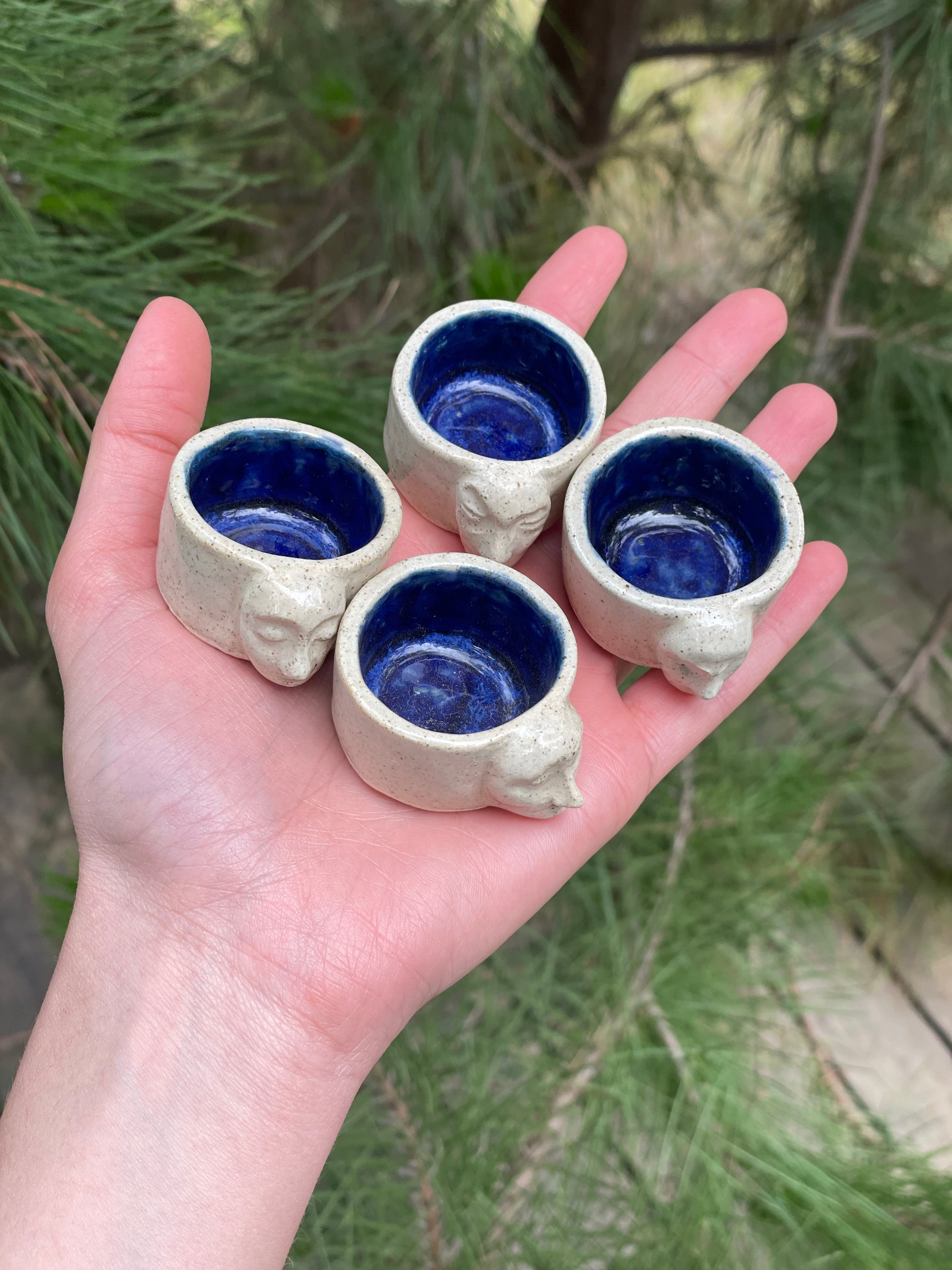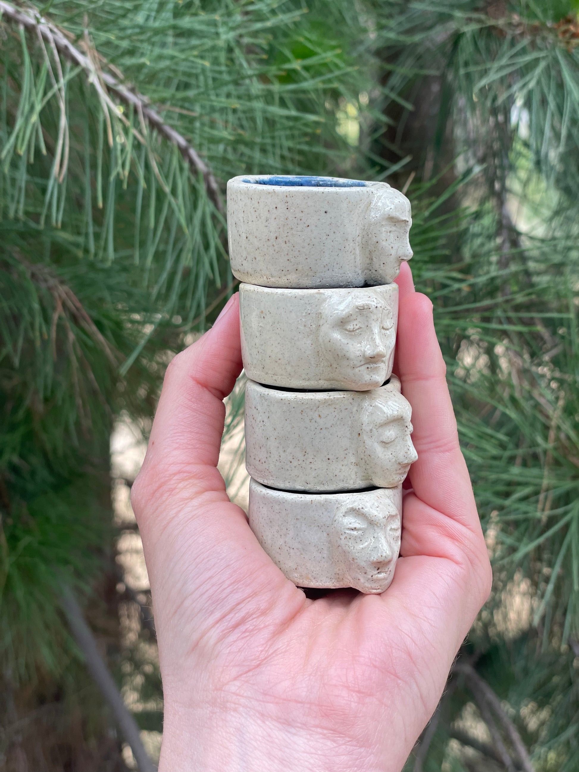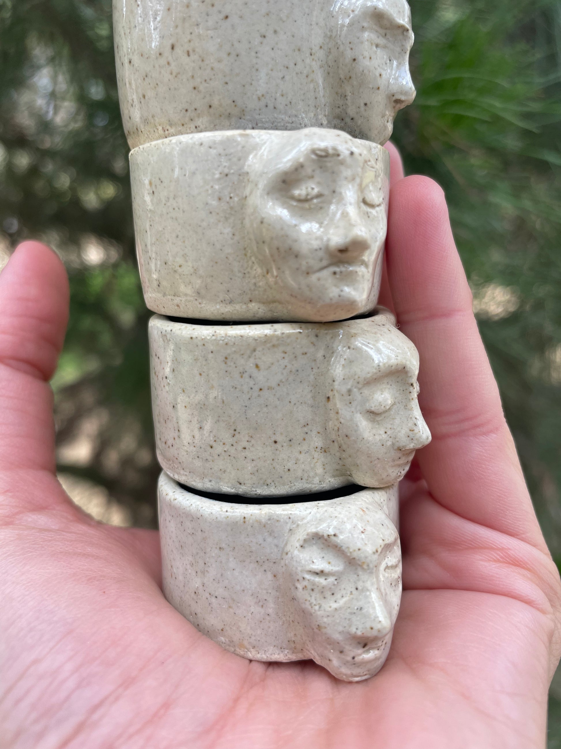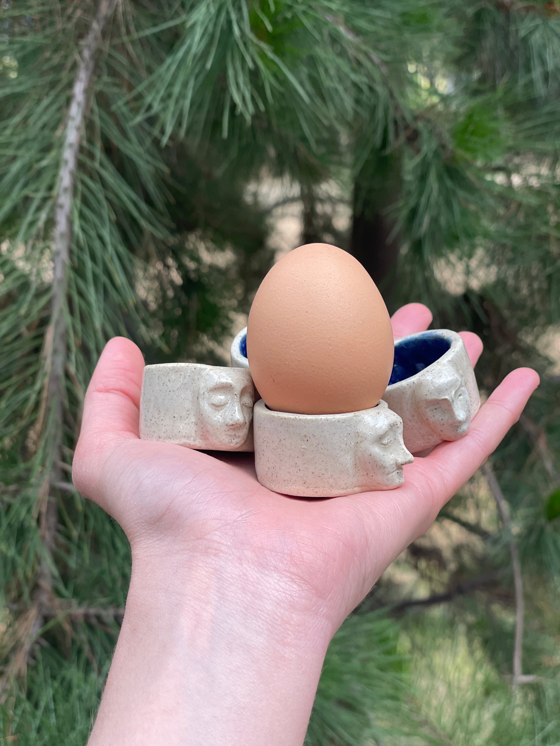 4 caretas para huevos a la copa. Esculpidos a mano en cerámica gres.